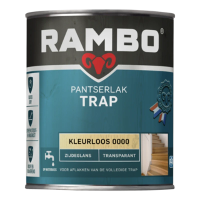 Houten trappen hebben het extra zwaar, speciaal daarvoor is er extra sterke Rambo Pantserlak Trap. De lak is extra snel droog, geurarm en vergeelt niet. Ook is de lak zeer kras- en slijtvast, vloeit mooi uit en beschermt jaren met een blijvende zijdeglans.