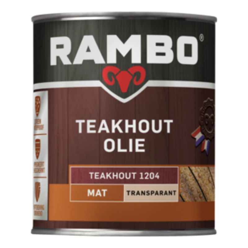Verzorg je teakhout met de extreem waterbestendige en voedende olie van Rambo. ‘Teakhout Olie Transparant’ accentueert de nerftekening en behoudt de natuurlijke uitstraling van het hout. De olie impregneert diep in het hout, ververst de natuurlijke teakkleur en beschermt tegen vergrijzing. Voor een optimaal resultaat minimaal 1x per jaar behandelen.
