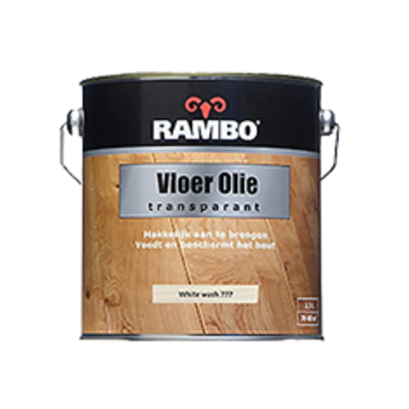 Ideaal voor het behandelen en onderhouden van houtsoorten met een open structuur. Rambo 'Vloer Olie Transparant' is een voedende olie en beschermt uw houten vloer tegen vocht en vuil. Omdat de transparante olie de houtnerf mooi zichtbaar houdt, behoudt de vloer zijn natuurlijke uitstraling.